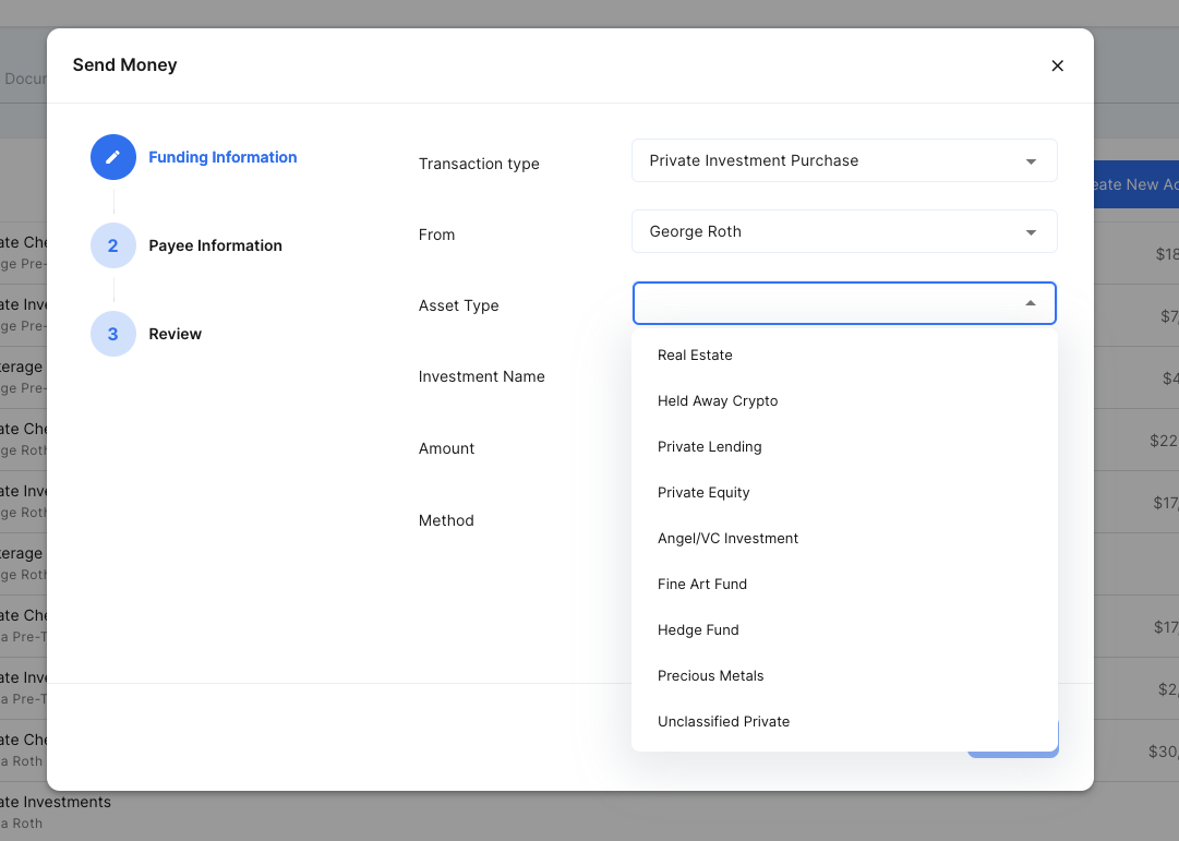 Buy any private investment with just a few clicks. Save counterparties for repeat usage.